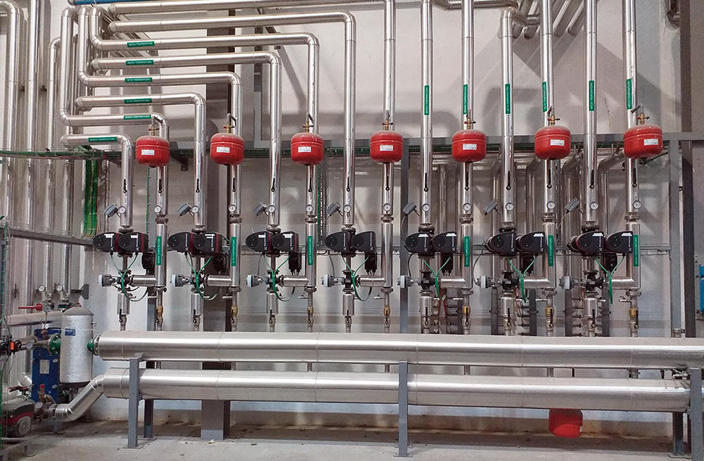 Realizzazione impianti di riscaldamento ad acqua per liquidi, costituiti da centrale di produzione, reti e collettori di distribuzione completi di tutti gli accessori e sicurezze necessarie.