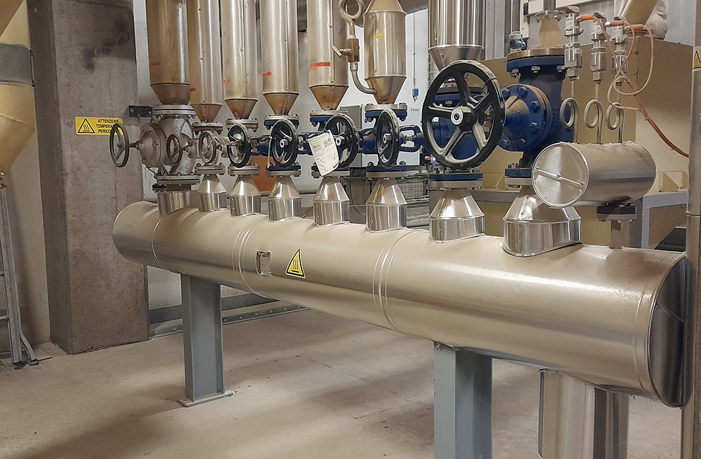 Realizziamo impianti per la produzione e distribuzione vapore, completi di collettori certificati PED, gruppi di riduzione pressione e drenaggio condensa.